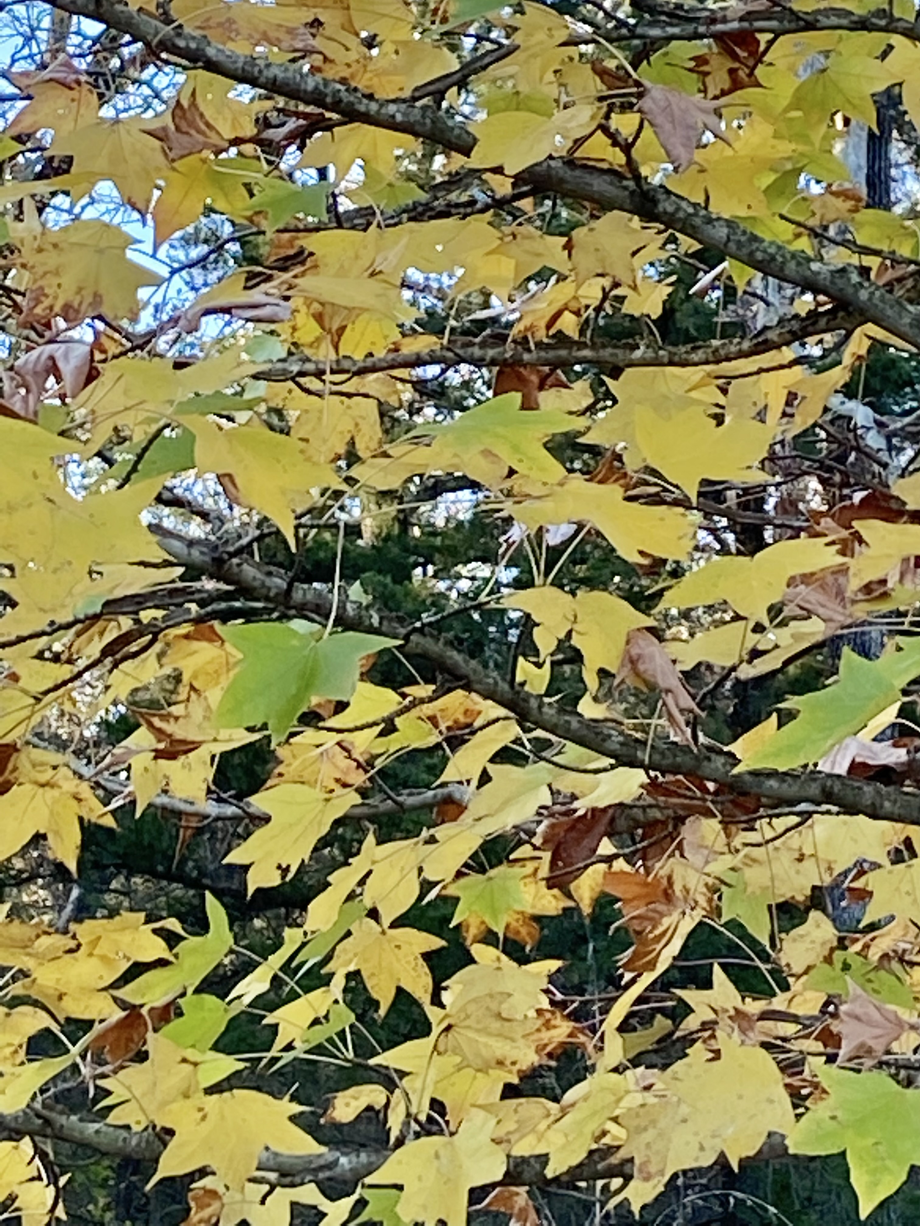 We’re actually having a fall in north Texas this year. Sometimes it seems fall is here for a week or two and then bingo, it’s winter chill! My trees are bursting with color! Well, not the post oak, blackjack and bur oaks so much, but the Chinese pistache and the sweetgum are yellow, red and orange gorgeous. When I lived and worked in Southern California all those years, as much as I enjoyed the pleasant winters, I did miss the seasons. What was interesting, in spite of no frost, the trees there turned into their fall colors anyway. Nature will have its way.